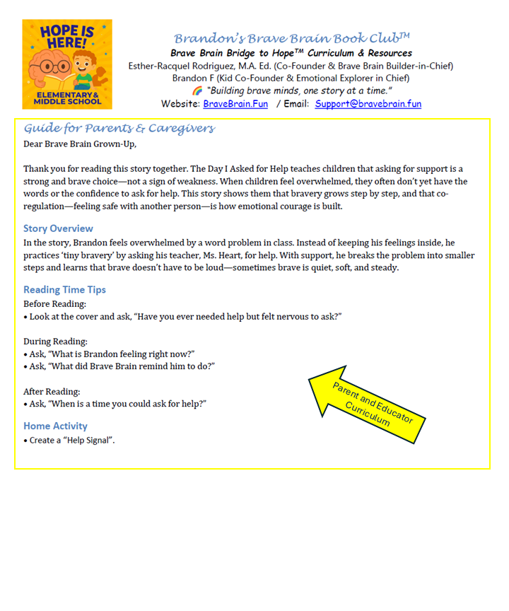 Help children understand their feelings, calm their bodies, use their voices, and make brave choices with this free preview of the Brave Brain Bridge to Hope™ Curriculum. This sample gives families, teachers, paraprofessionals, and counselors a first look at the stories, activities, and tools inside Unit One.